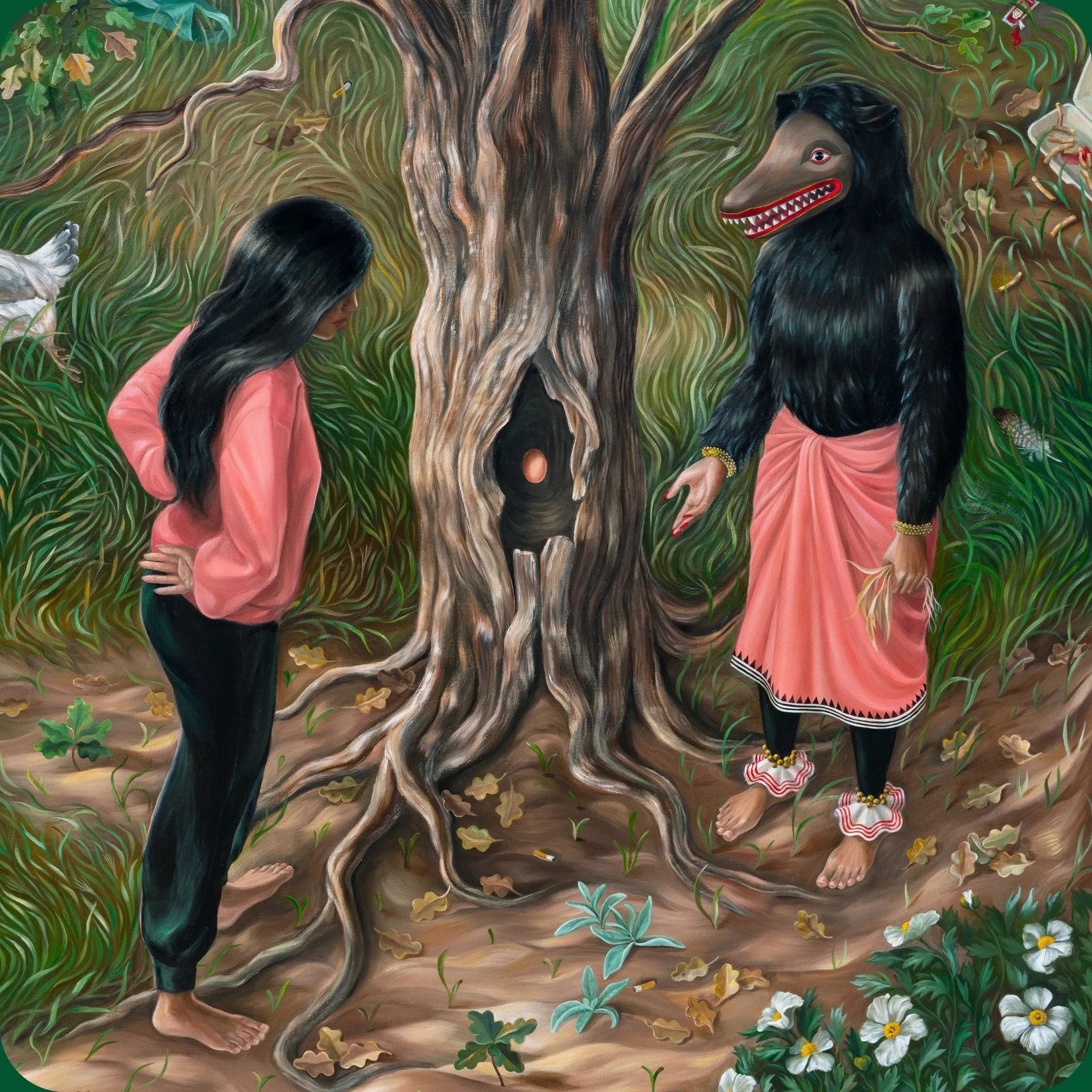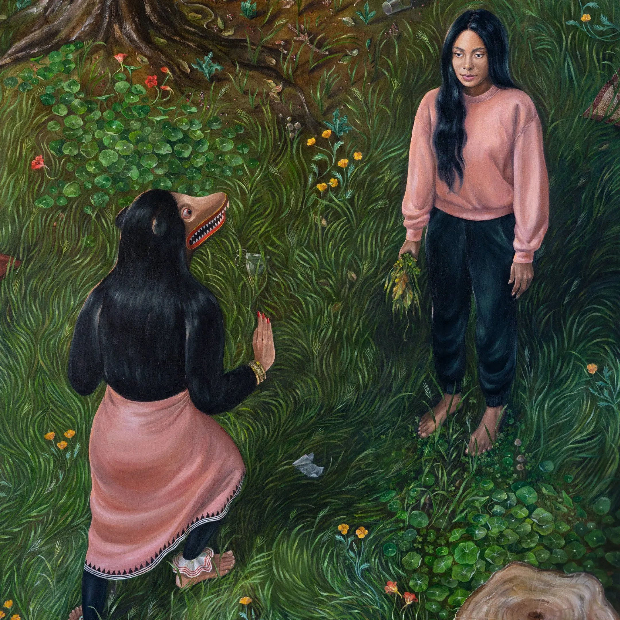SG: The work usually reflects what is going on in my brain at the time. The portraits of women were my attempt to depict women in a way that communicated agency to counteract the images that we are all used to seeing that do the opposite. The tree portraits coincided with my own reckoning with the false dichotomy of nature and culture. The Yakkas are a way to explore my own experiences and struggles with depression and anxiety which I think are at least partially caused by societal issues, judging by how widespread they are today.